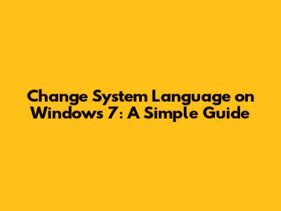 Change System Language On Windows 7: A Simple Guide