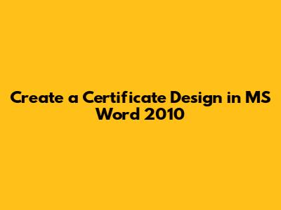Create A Certificate Design In MS Word 2010