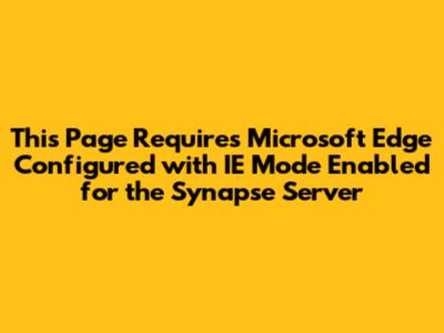 Have you ever encountered the frustrating message: "This page requires Microsoft Edge configured with IE mode enabled for the Synapse server?" Guys, don't worry, you're not alone! This error pops up when you're trying to access certain functionalities within the Synapse environment that still rely on older technology. Specifically, they need the Internet Explorer (IE) mode to run correctly within Microsoft Edge. Think of it as needing a translator for your modern browser to understand the old language of some web pages. Let's dive into why this happens and, more importantly, how to fix it, so you can get back to your Synapse tasks without any further interruptions. We'll cover everything from the basic explanation of IE mode to a step-by-step guide on enabling and configuring it. Trust me, by the end of this article, you'll be an IE mode pro! Understanding the need for IE mode is crucial. Some web applications, especially those developed in the past, were built using technologies that are only fully supported by Internet Explorer. When these applications are accessed through modern browsers like Microsoft Edge, compatibility issues can arise. To bridge this gap, Edge offers IE mode, which emulates the behavior of Internet Explorer, allowing these older applications to function correctly. This is particularly relevant in enterprise environments where legacy systems are still in use. IE mode provides a seamless way to access these systems without requiring users to switch to an older browser. Enabling IE mode in Edge is a straightforward process. The first step is to access the settings menu in Edge. This can be done by clicking on the three dots in the top right corner of the browser and selecting "Settings" from the dropdown menu. Once in the settings menu, navigate to the "Default browser" section. Here, you will find the option to "Allow sites to be reloaded in Internet Explorer mode." Toggle this option to "Allow." After enabling this setting, you will need to restart Edge for the changes to take effect. Once Edge is restarted, you can configure specific sites to open in IE mode. This is done by adding the URLs of these sites to a list in the Edge settings. To do this, go back to the "Default browser" section in settings and click on the "Add" button next to "Internet Explorer mode pages." Enter the URL of the site that requires IE mode and click "Add." This will ensure that the specified site automatically opens in IE mode whenever you access it.