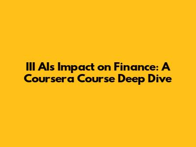 III AI's Impact On Finance: A Coursera Course Deep Dive