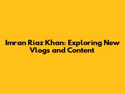 Imran Riaz Khan: Exploring New Vlogs And Content