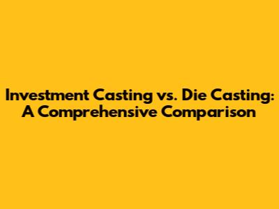 Investment Casting Vs. Die Casting: A Comprehensive Comparison