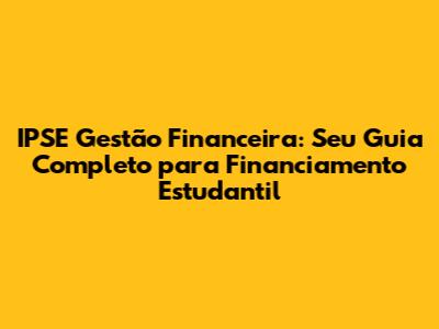 IPSE Gestão Financeira: Seu Guia Completo Para Financiamento Estudantil
