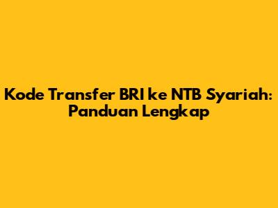 Kode Transfer BRI Ke NTB Syariah: Panduan Lengkap