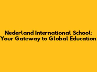 Nederland International School: Your Global Education Hub