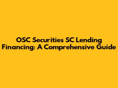 OSC Securities SC: Your Guide To Lending & Financing