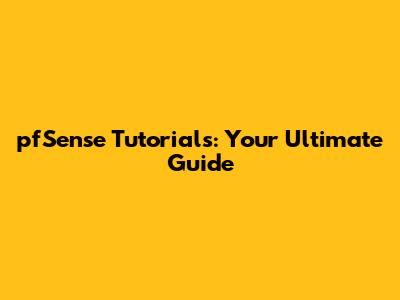 PfSense Tutorials: Your Ultimate Guide