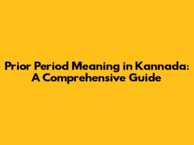 Prior Period Meaning In Kannada: A Comprehensive Guide