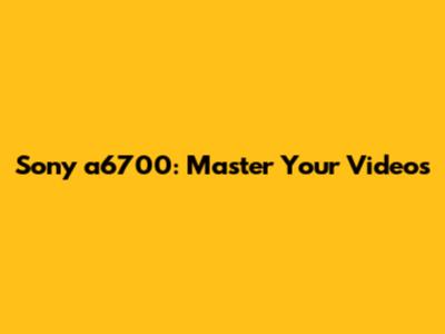 Sony A6700: Master Your Videos