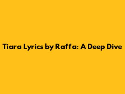 Tiara Lyrics By Raffa: A Deep Dive