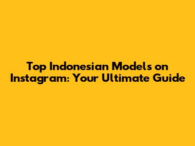Top Indonesian Models On Instagram: Your Ultimate Guide