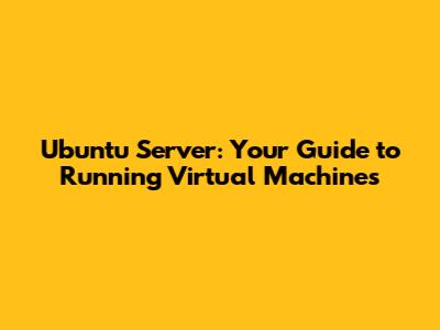 Ubuntu Server: Your Guide To Running Virtual Machines
